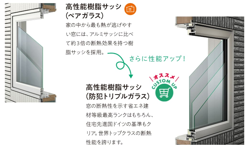 樹脂サッシ+ペアガラス(Low-E仕様)