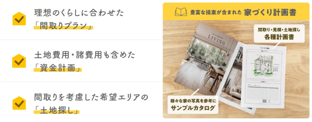 「間取りプラン」「見積もり」「土地探し」3つの計画書を複数社から無料でもらえる