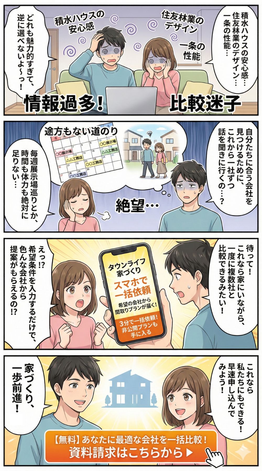 家づくりの不安を解消する記事紹介4コマ